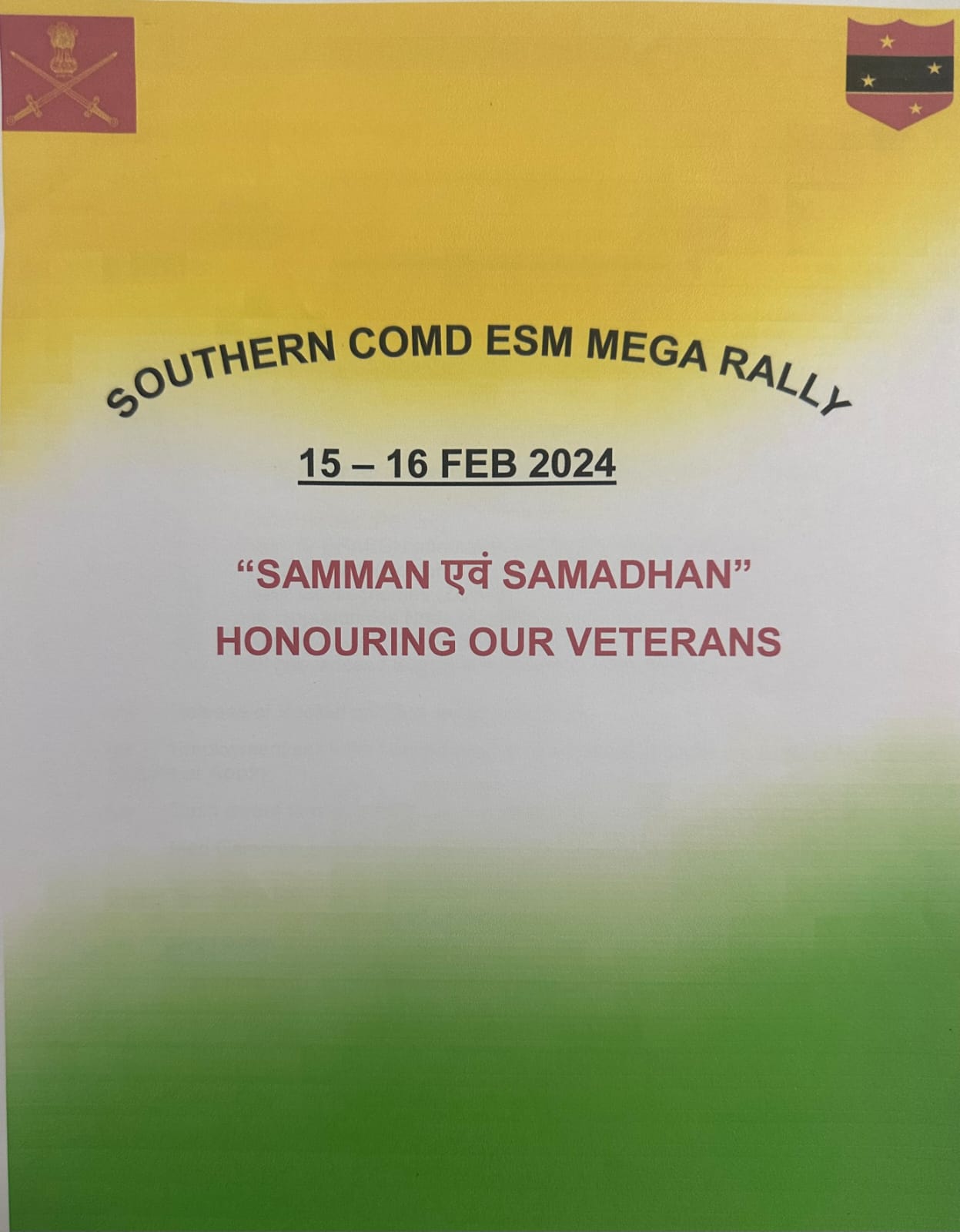 An ESM mega rally will be organised under the aegis of Southern Command at Pune on 15 – 16 Feb 2023. The rally being held with the theme ‘Samman Evam Samadhan’ aims to address the concerns of ex-servicemen and will commence at 09.00 am on 15 Feb 24 at Milkha Singh Sports Complex, in Pune Camp and continue on 16 Feb also. Approximately 3000 veterans will attend the rally in Pune, with an additional 40,000 veterans joining in an online mode through Video Conferencing from 20 Stations spanning nine states.