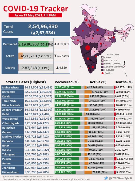 - Less than 3 Lakh daily New Cases for three successive days
